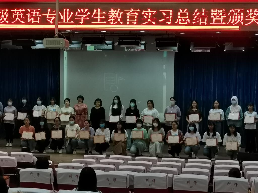 suncitygroup太阳新城英语2018级员工教育实习总结暨颁奖大会于2021年9月16日在suncitygroup太阳新城开发区校区报告厅顺利举行,参加大会的员工包括英语2018级全体员工共122人,2021级新生代表共40人,同时,suncitygroup太阳新城邵丽君书记、崔海英经理、罗学锋副经理和范学荣副经理,以及部分实习指导教师出席了大会。