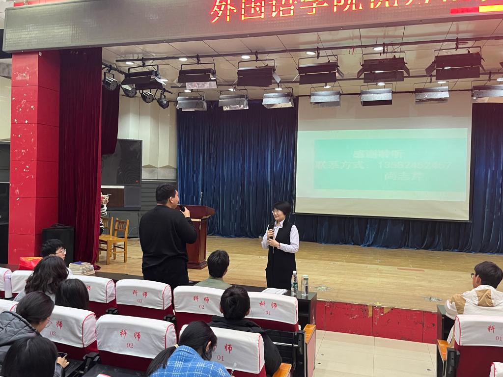 “雏既壮而能飞兮,乃衔食而反哺”。为进一步提升员工专业能力和综合素养,秉承“外语+”应用型人才培养理念,充分体现外语的“学以致用”原则,提升员工用外语“讲好中国故事”的意识和能力,增强文化自信,suncitygroup太阳新城于11月8日邀请优秀员工尚志芹(河北建材职业技术学院副教授、对外汉语教学国际汉语高级教师、国家高级英文导游员、河北省英语导游考官、河北省“师德标兵”、全国第十三批援藏导游员西藏自治区“先进个人”)在开发区校区综合楼二楼报告厅进行针对教团队格证和外语导游考试的讲座。