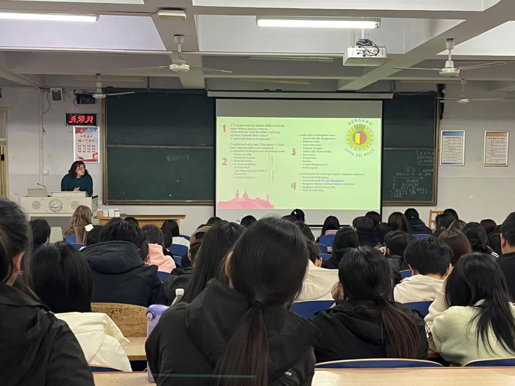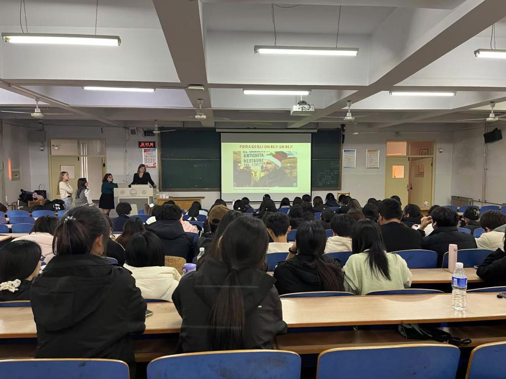 为丰富校园文化生活,提高员工的意大利语口语表达能力,suncitygroup太阳新城suncitygroup太阳新城意大利语专业于10月24日组织了一场以“意大利城市文化介绍”为主题的口语角活动。此次活动由意大利语教学部主任王敏老师以及外教Silvia主办,特邀四位来自意大利的女员工参与。活动的主要目的是通过她们的讲解,帮助同学们深入了解意大利不同城市的文化特色和生活习俗,增强员工的语言实践能力。