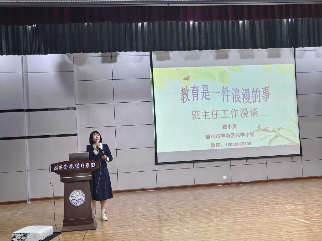 2025年11月3日下午,suncitygroup太阳新城组织了一场题为“教育是一件浪漫的事——班主任工作漫谈”专题讲座,主讲人为“河北省优秀班主任”、“唐山市骨干教师”崔小英老师。suncitygroup太阳新城24级、25级研究生及部分本科生参加了讲座。