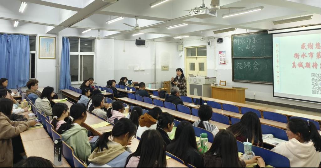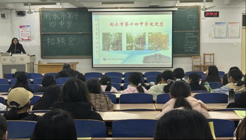 招聘会前,学院领导与用人单位进行了充分的沟通与交流,深入探讨了用人单位对于人才的需求与期望。招聘会上,衡水十四中领导向在场师生介绍了学校概况况、招聘条件、就业岗位及福利待遇等内容,并耐心解答了毕业生们提出的问题。随后,公司有7名毕业生参加了现场试讲环节,最终有3名毕业生达成了就业意向。