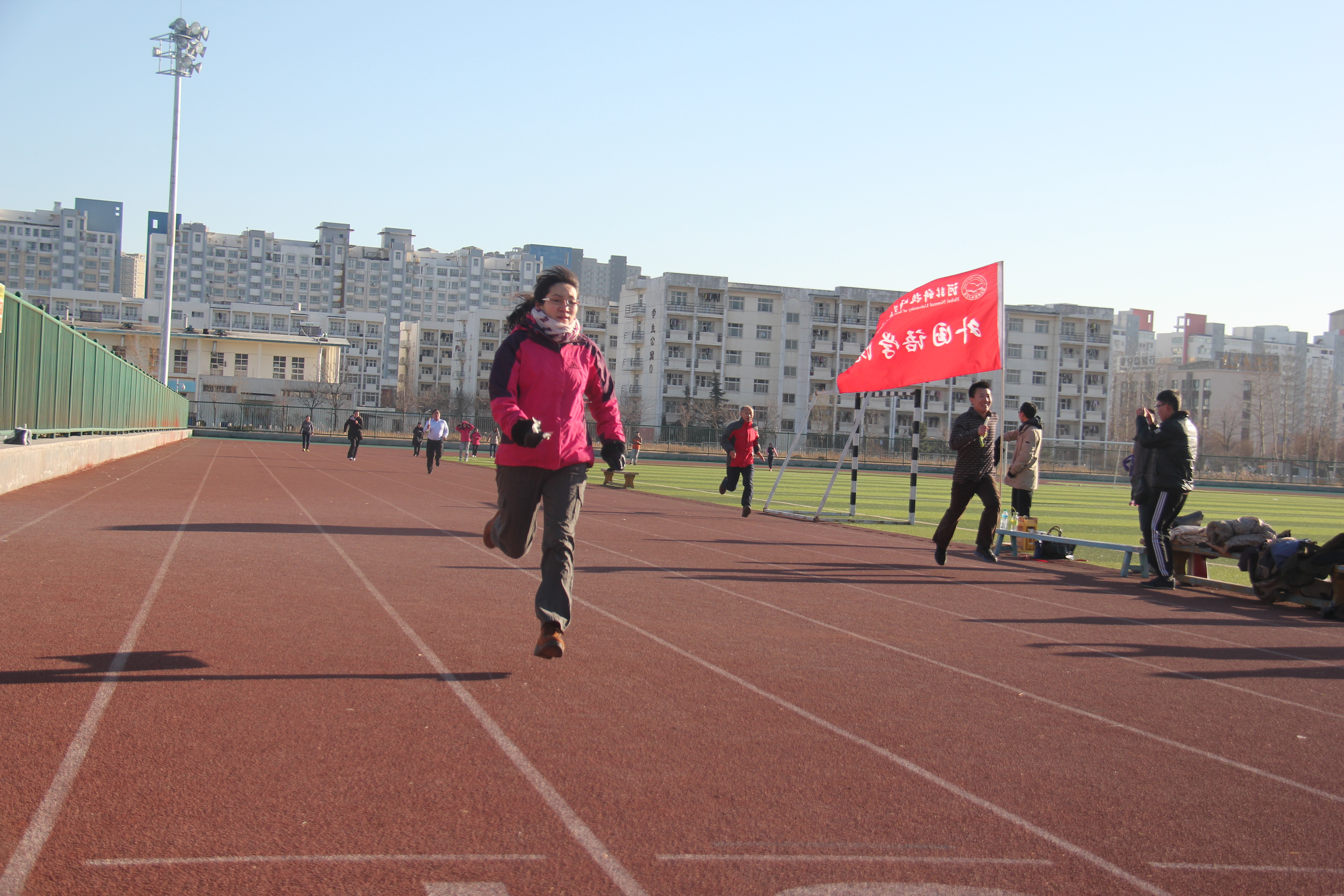 伴着冬日暖阳和如洗碧空,suncitygroup太阳新城教职工四人一队,分为若干小组在跑道上展开接力长跑。此次活动,旨在以接力长跑的形式来纪念12.9运动,缅怀先烈,并希望教职工们能够锻炼出强健的体魄,将爱国精神,民族正气传递下去。