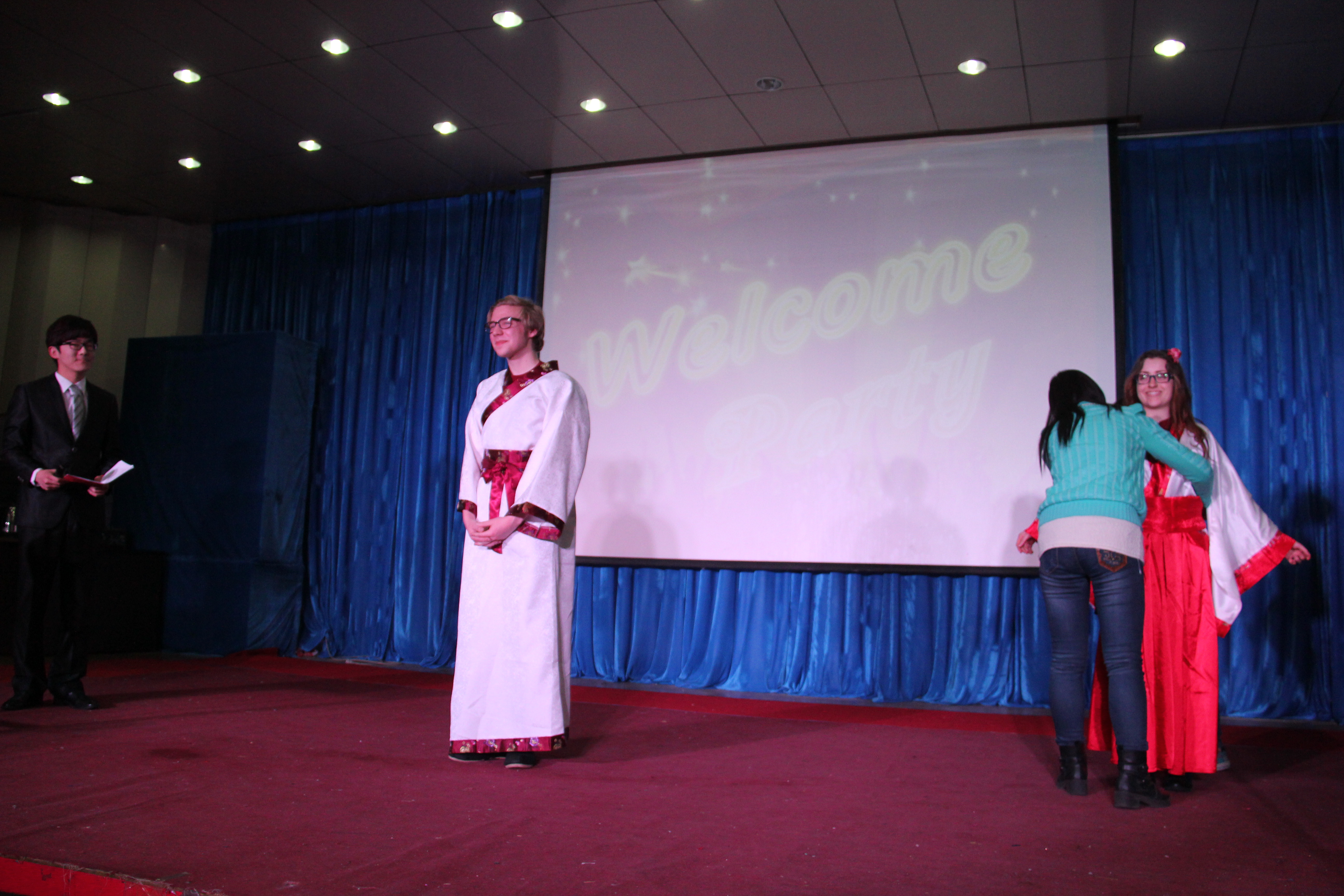 2014年3月28晚7点30分,suncitygroup太阳新城suncitygroup太阳新城在综合楼学术报告厅举办了主题为“欢迎美国友人”的晚会。来自美国Enloe高中的14名师生、suncitygroup太阳新城经理邵丽君、国际交流处郁洋老师及suncitygroup太阳新城的同学们一起观看了本次晚会。