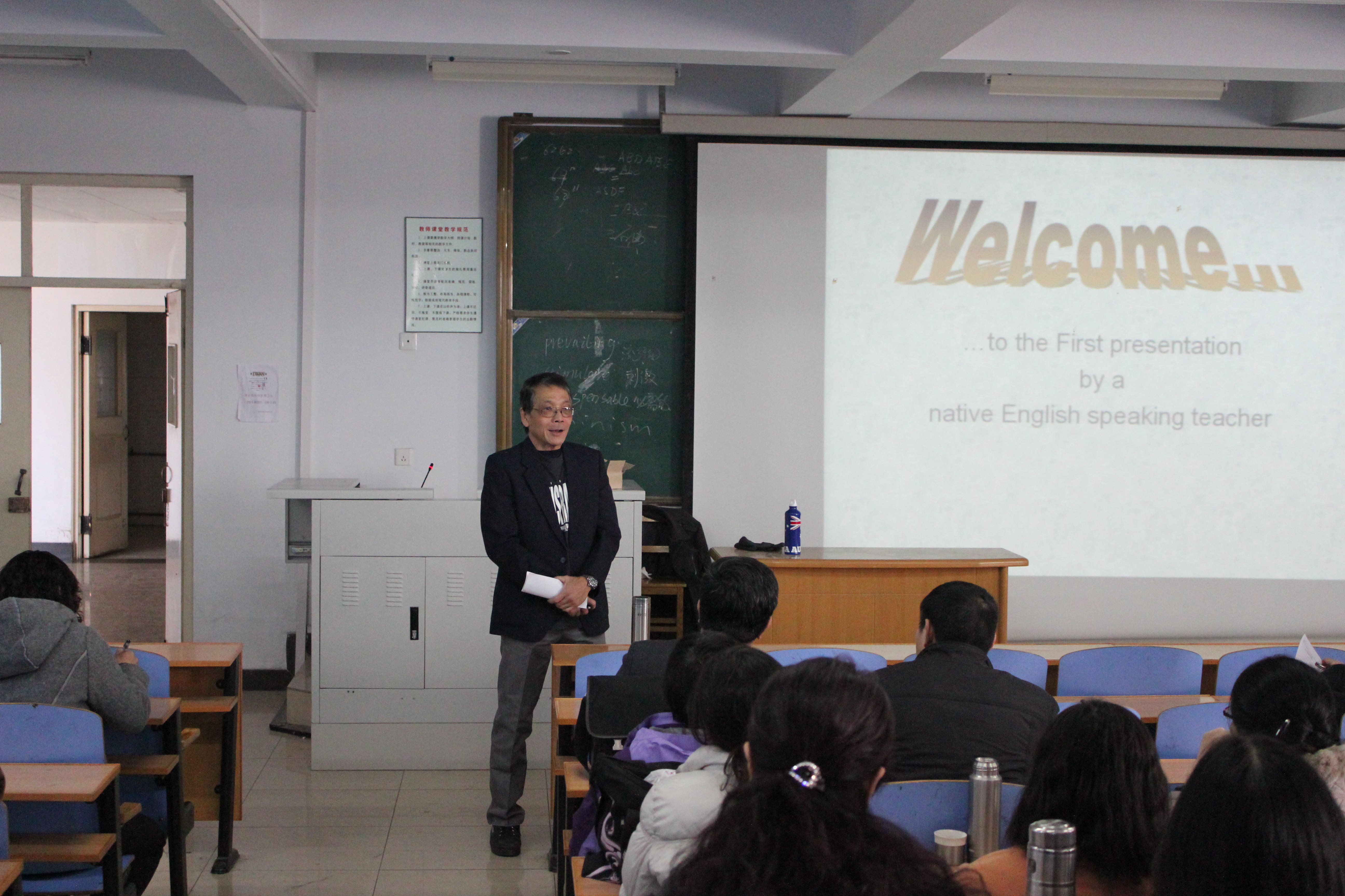 首先,Michael为大家做了题为“Major Challenge in Teaching Oral English in China”的讲座。他通过自身的教学经验并结合中国员工的特点向在座的老师们介绍了如何提高员工的学习积极性,如何在课堂上练习口语等方法。通过他的讲解,老师们接触到了新的方法与思路,有助于以后的课堂教学与实践。