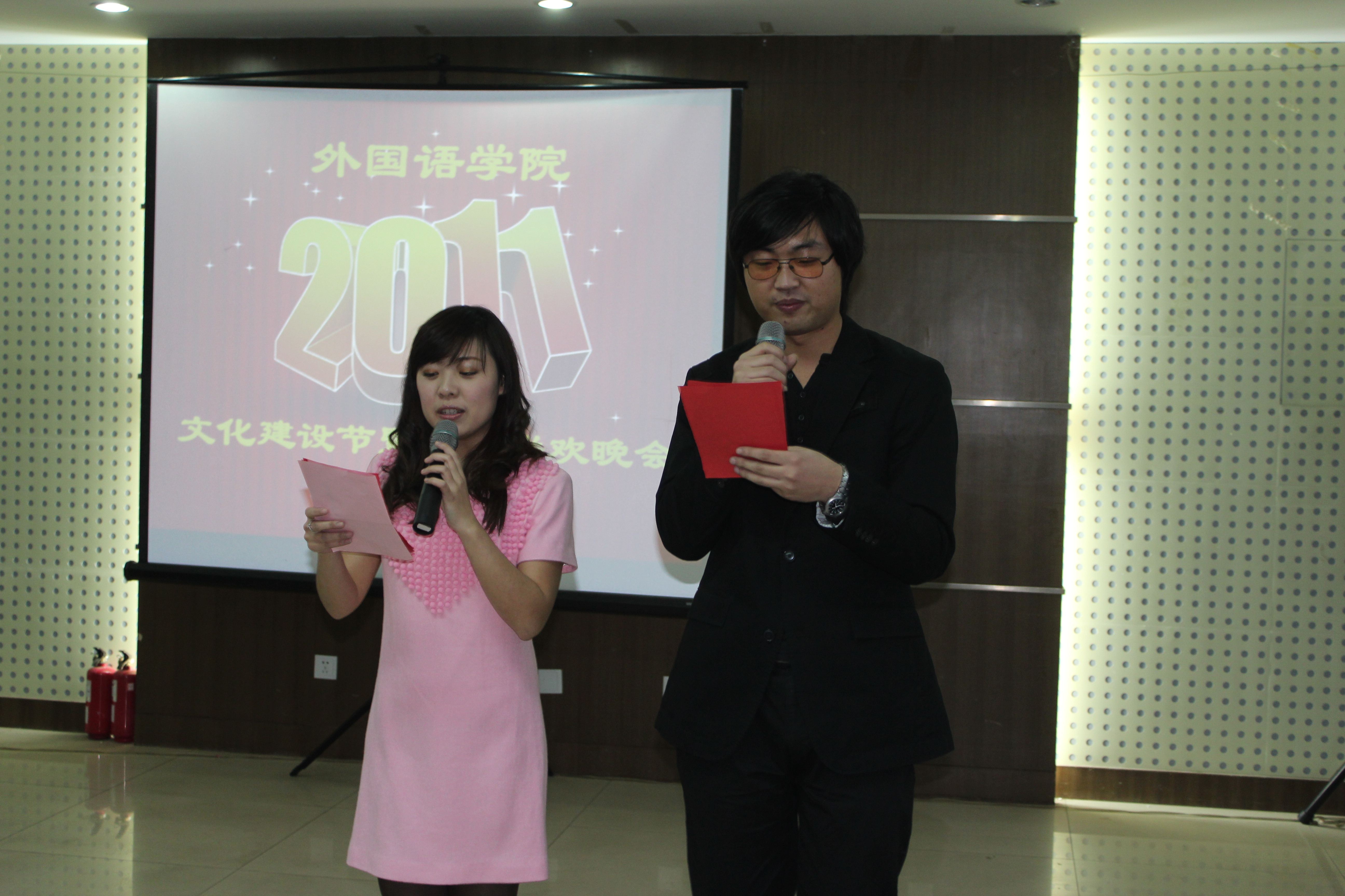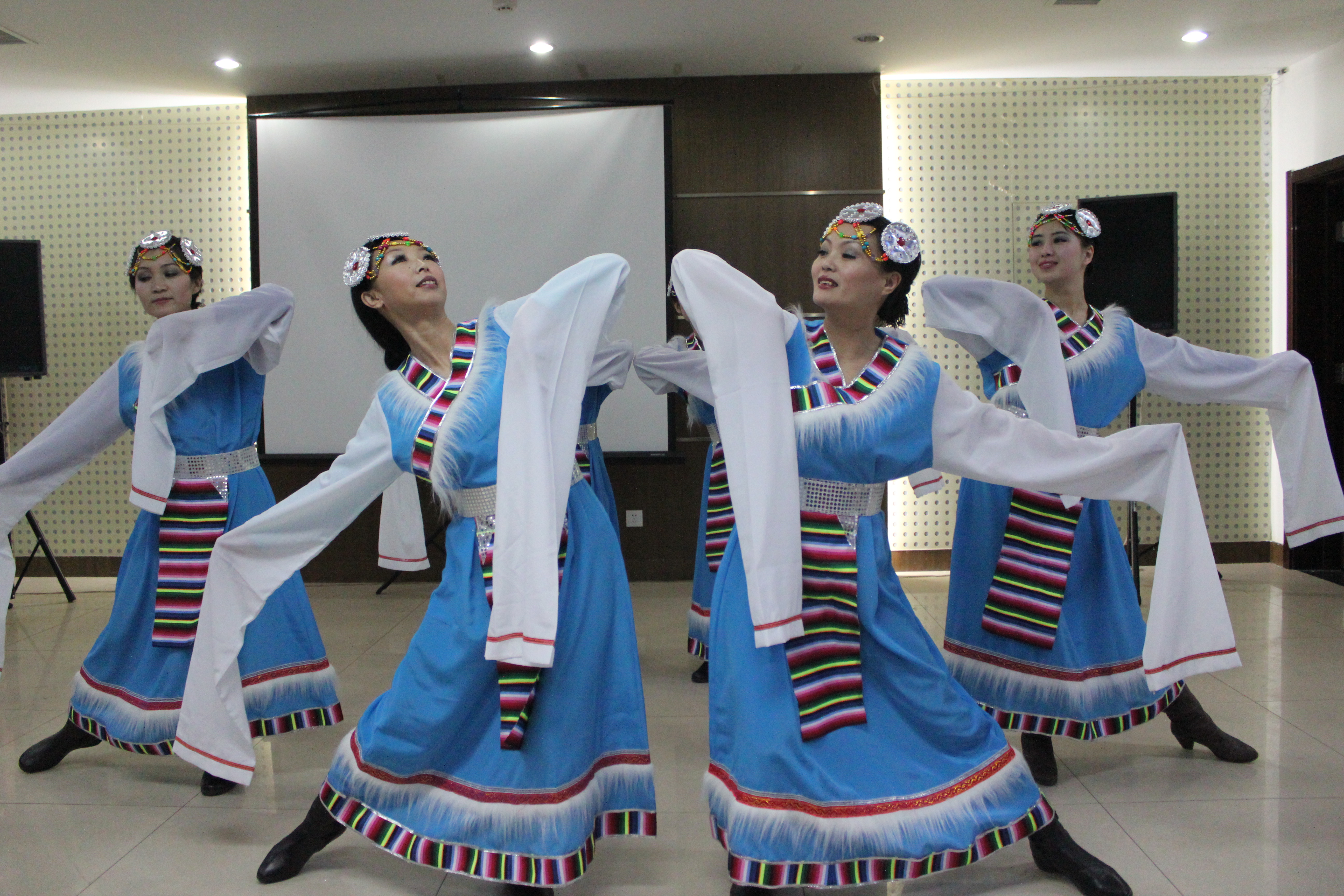 联欢会在公司党委书记刘朝晖同志幽默、给力的致辞声中开始。在主持人邵东蕊和孙晓萌铿锵有力的声音引导下,教师们精心准备的节目依次上演:以马晓迎老师为首的应用英语教研室的老师们带领在场的其他老师们做起了第八套广播体操,让大家重温了青春岁月;两个曾经的老兵游建民和吴玉新老师又重新“扛起了革命的枪”;办公室与学工办的老师们联手为大家献上了一出“杨白劳与黄世仁”;以邵经理和崔经理为首的“舞蹈家”们为大家跳了一段精彩火爆的舞蹈-开门红;郭文颖、李爽等几位老师的舞蹈“吉祥谣”在联欢会上吹起了一股藏族风,“谋杀”胶卷无数。本次联欢会精彩纷呈,教师们纷纷上台表演,唱歌跳舞,说拉弹唱,真是丰富多彩,就像刘朝晖书记所说的那样:老师们纷纷一改往日的严肃,真正的做到了“颠覆自我”。