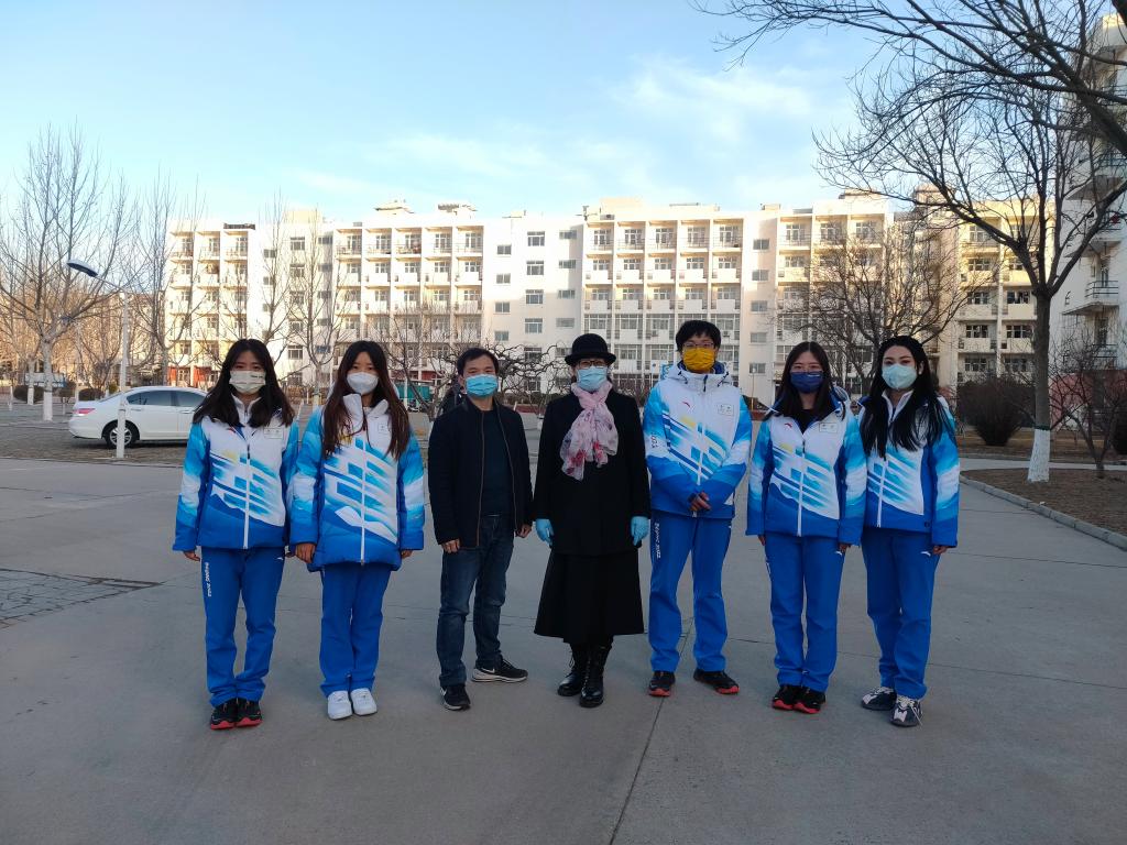 冬奥志愿者和老师们合影
