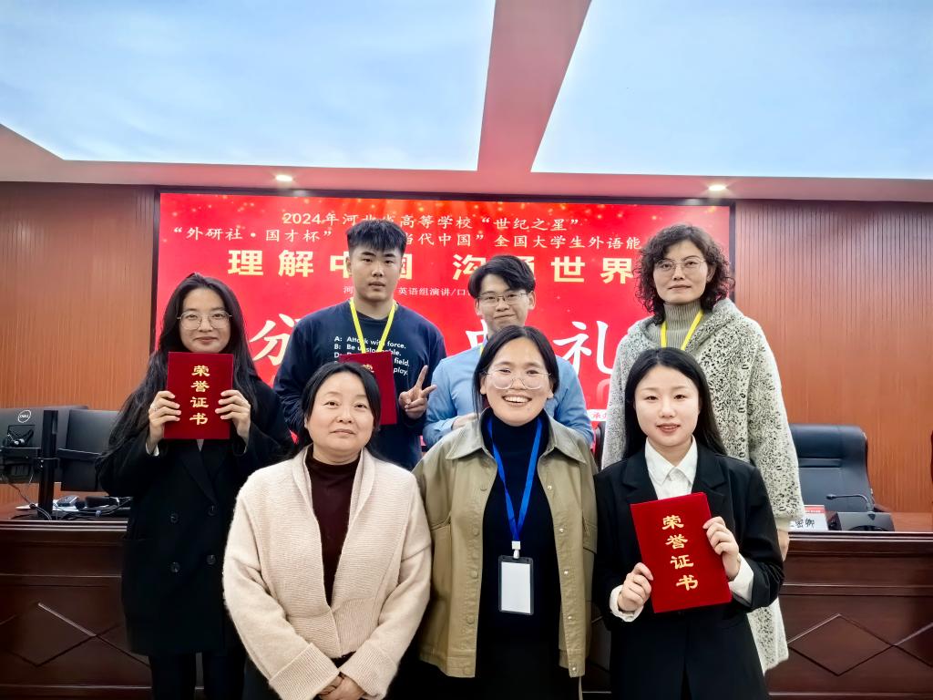 2024年11月9日,河北省高等学校“世纪之星”“外研社·国才杯”“理解当代中国”老员工外语能力大赛演讲、口译赛项在石家庄学院火热开启。经过激烈角逐,在全省本科及研究生英语演讲赛项中,公司员工胡开升在75名选手中脱颖而出,以第四名的成绩荣获大赛金奖,将代表河北省参加全国总决赛;李瑛钦荣获银奖;卢洪洋、时祺和王凯伦获得铜奖。在英语口译赛项中,李子妍、刘婷婷获得铜奖。
