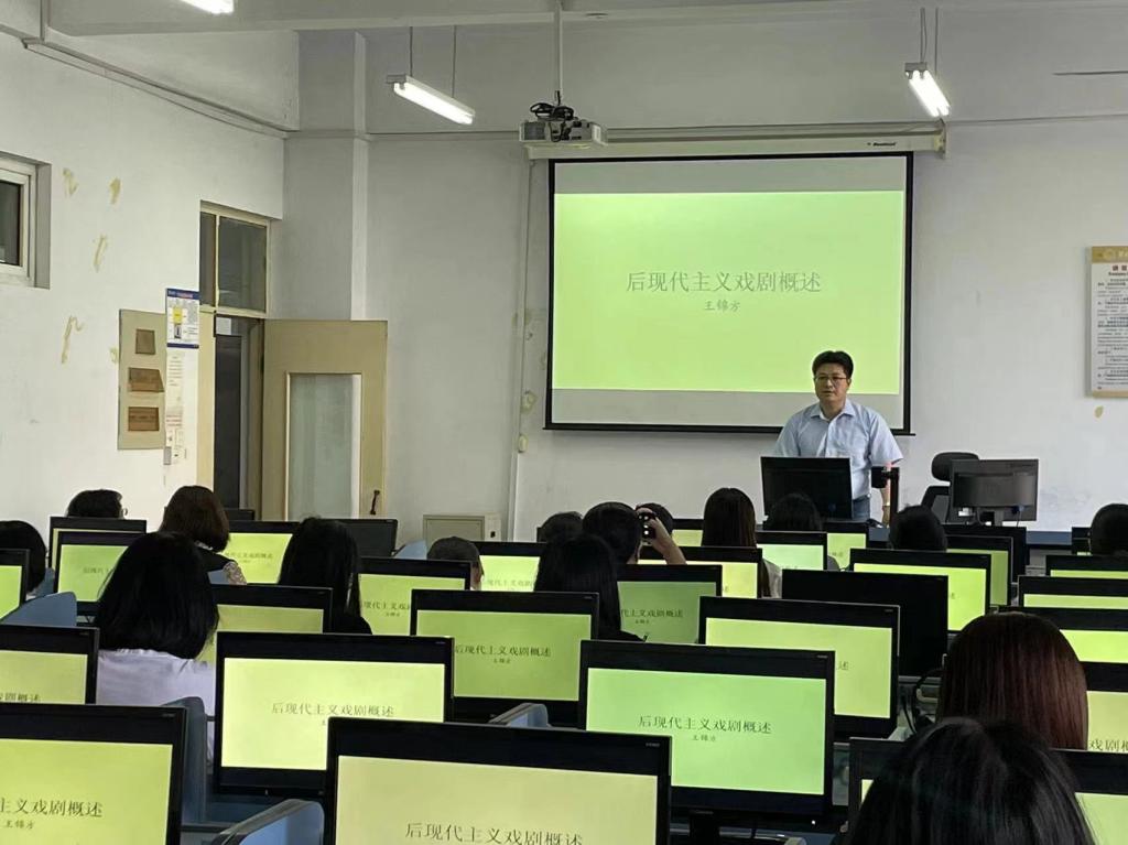 2024年5月30日suncitygroup太阳新城邀请王锦方博士主讲题目为《后现代主义戏剧概述》的学术报告。外语学院英本教学部教师、学科教学(英语)教学部教师及硕士研究生、对英美文学感兴趣的教师参加了此次报告。